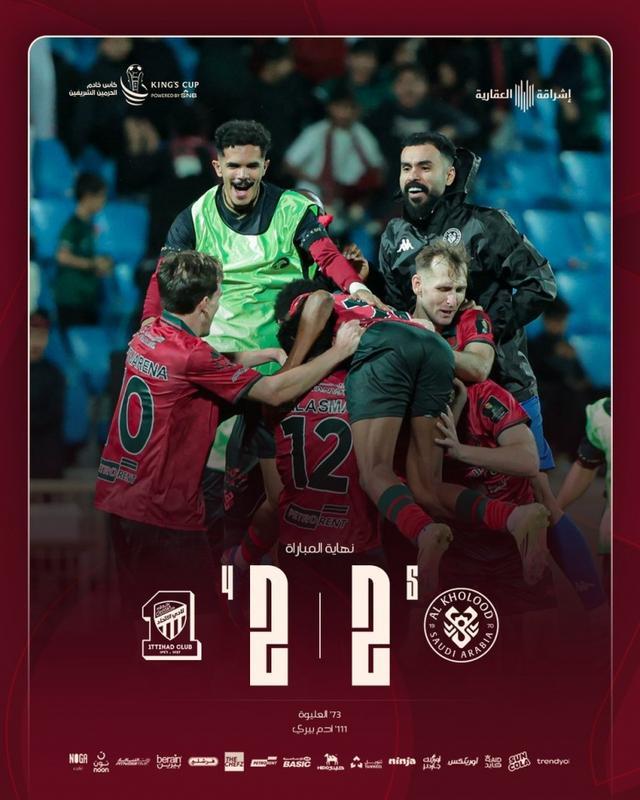 此役第40分钟迪亚比为吉达联合先拔头筹,第73分钟阿利瓦扳平比分,两队进入加时赛。第96分钟贝尔温破门,吉达联合再次领先,第111分钟亚当·贝里还以颜色,最终两队120分钟战成2-2平局,进入点球大战。